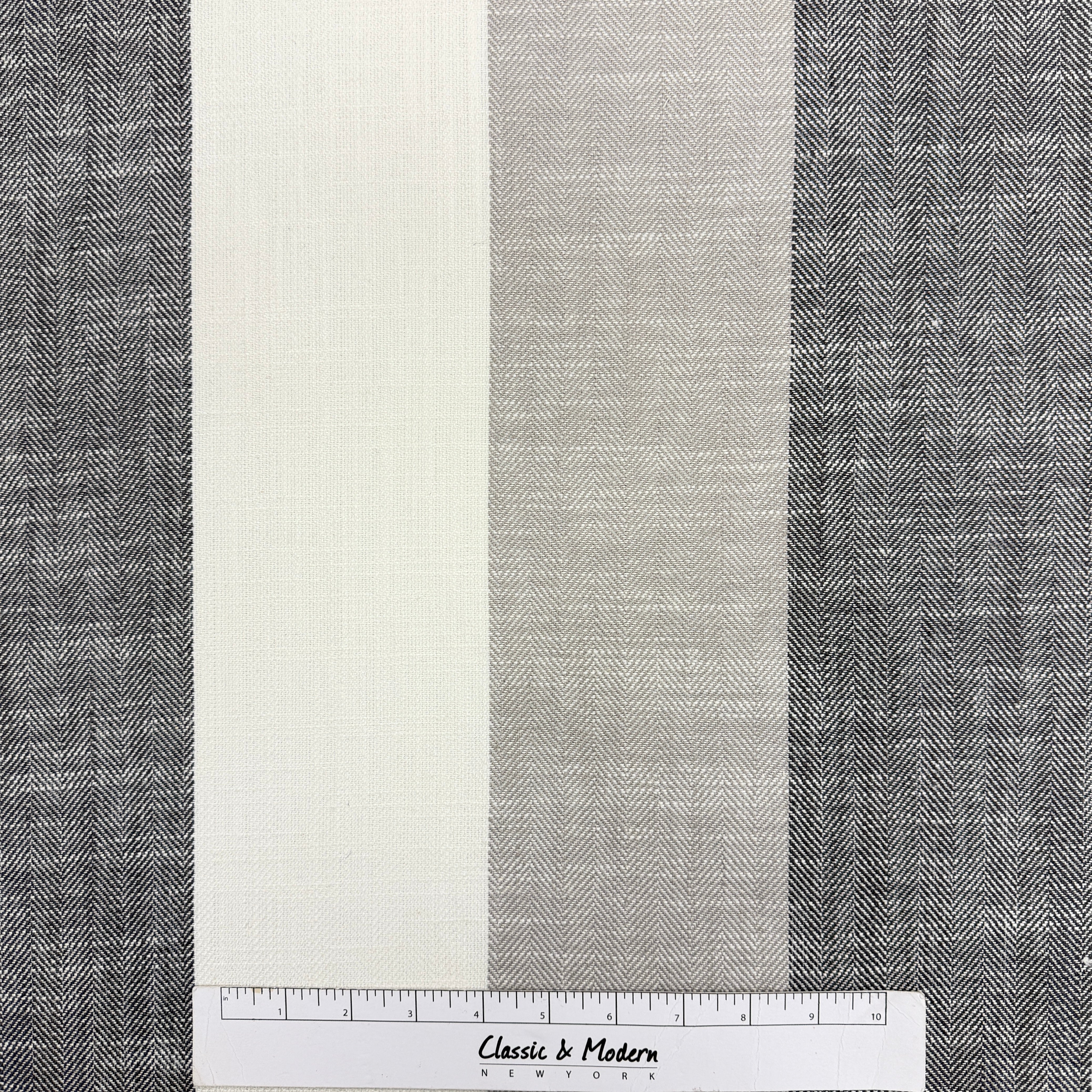 White & Smoke Gray 5" Striped 100% Natural Linen Flat Roman Shade/CL1026