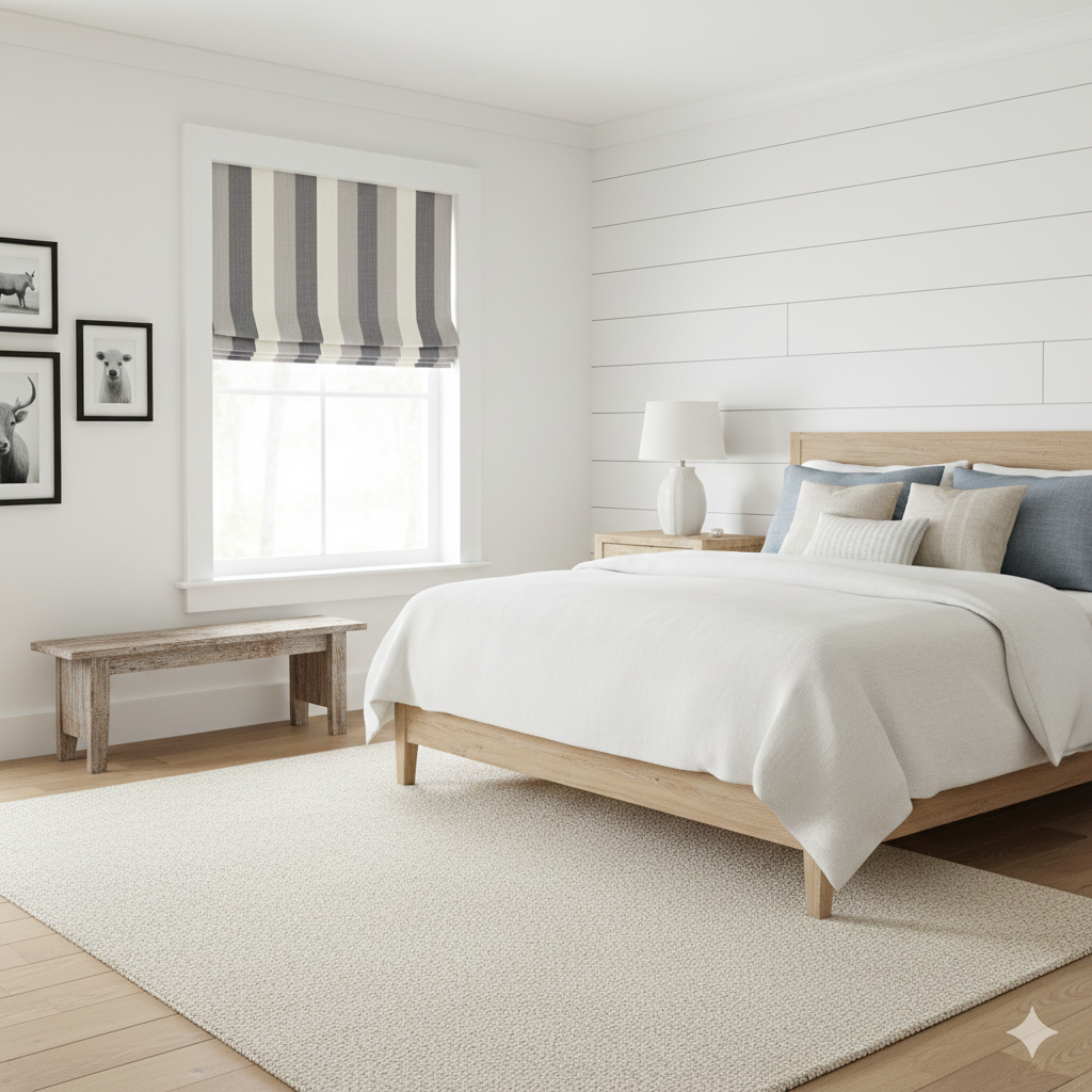 Striped Multi Color Farmhouse Modern Flat Roman Shade/CL1193