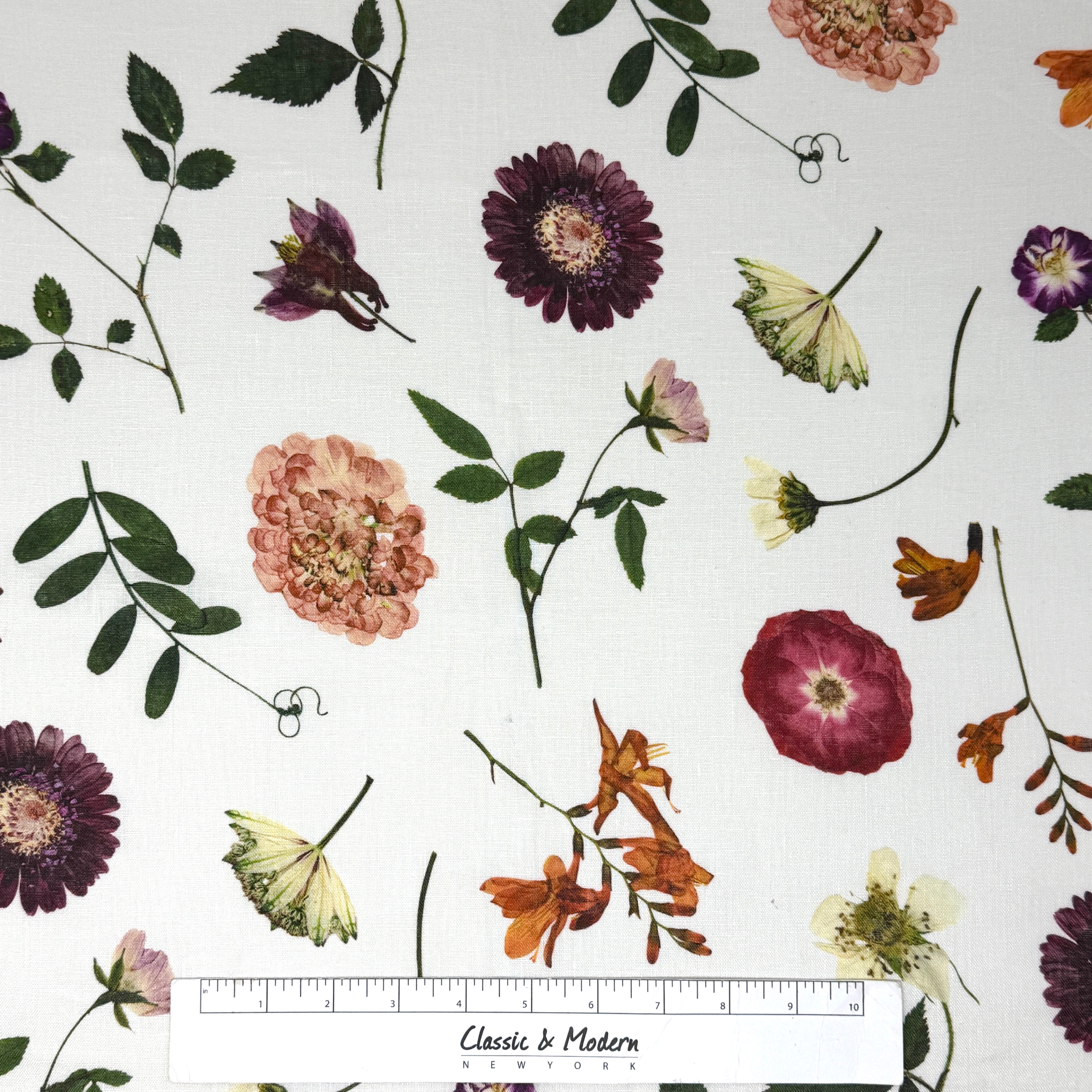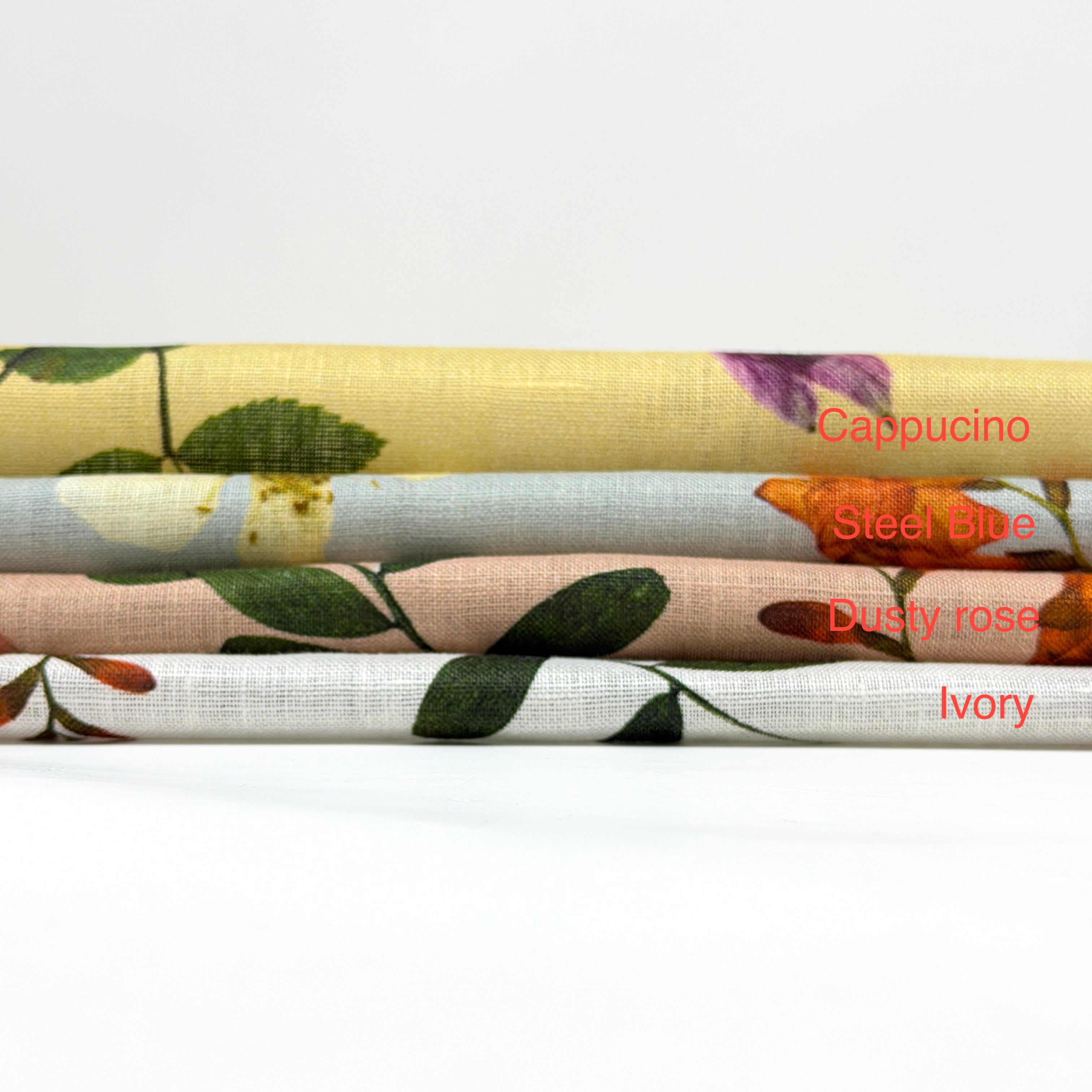 Floral Plants Handkerchief Light Weight 100% Linen Fabric By The Yard/58" Width/CL1109