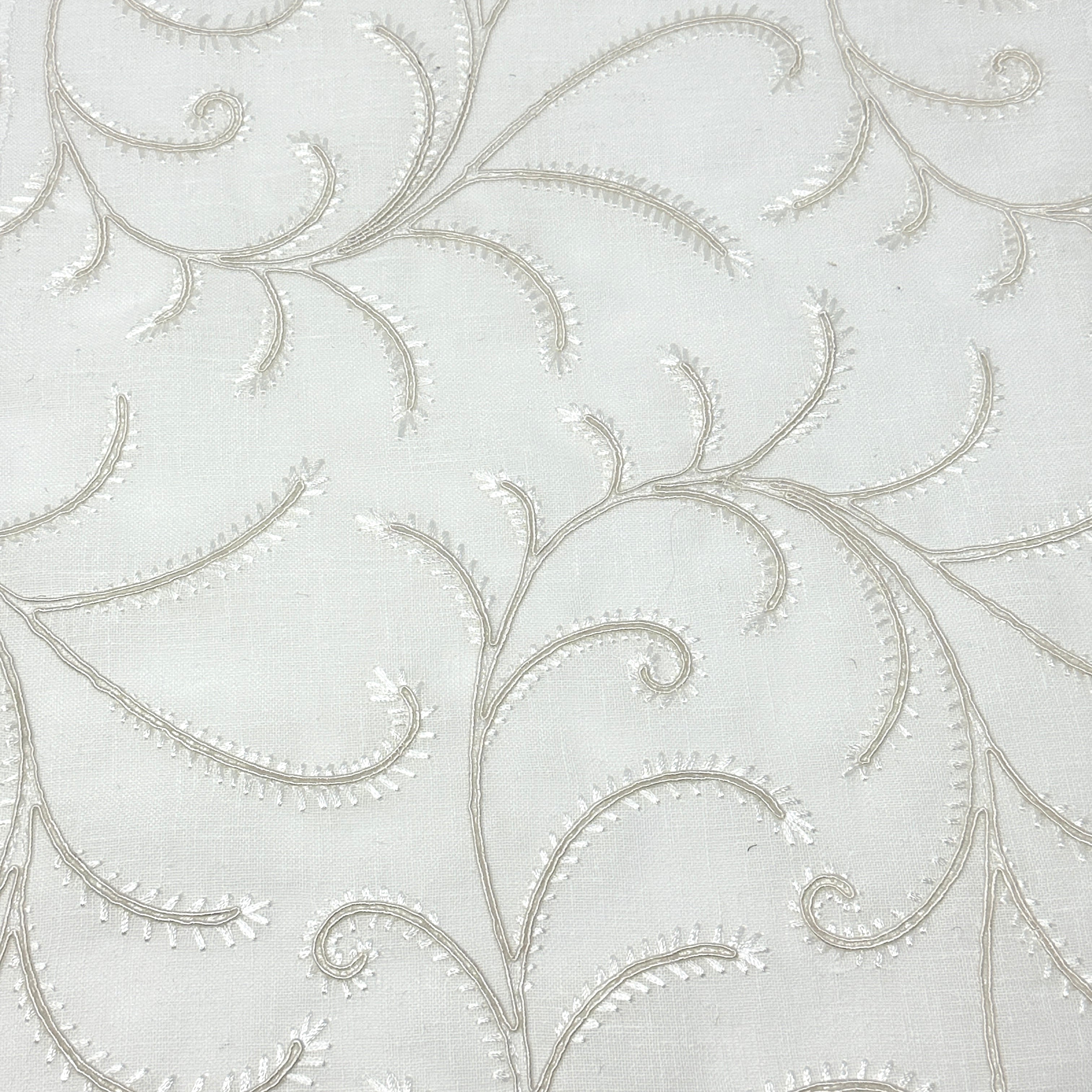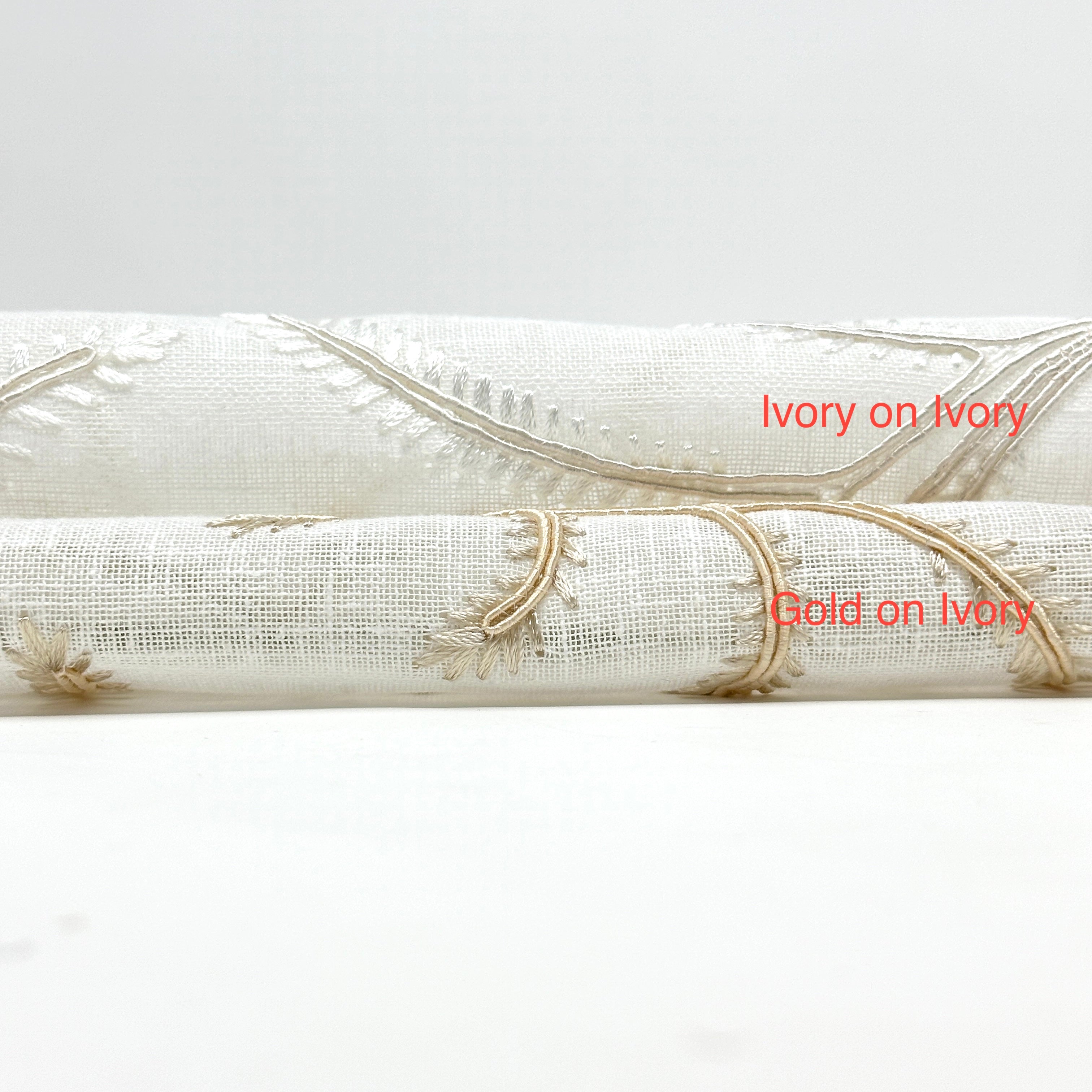 Long Leaf Embroidery Sheer Linen Blend Fabric by the Yard / 54" Wide / CL1173