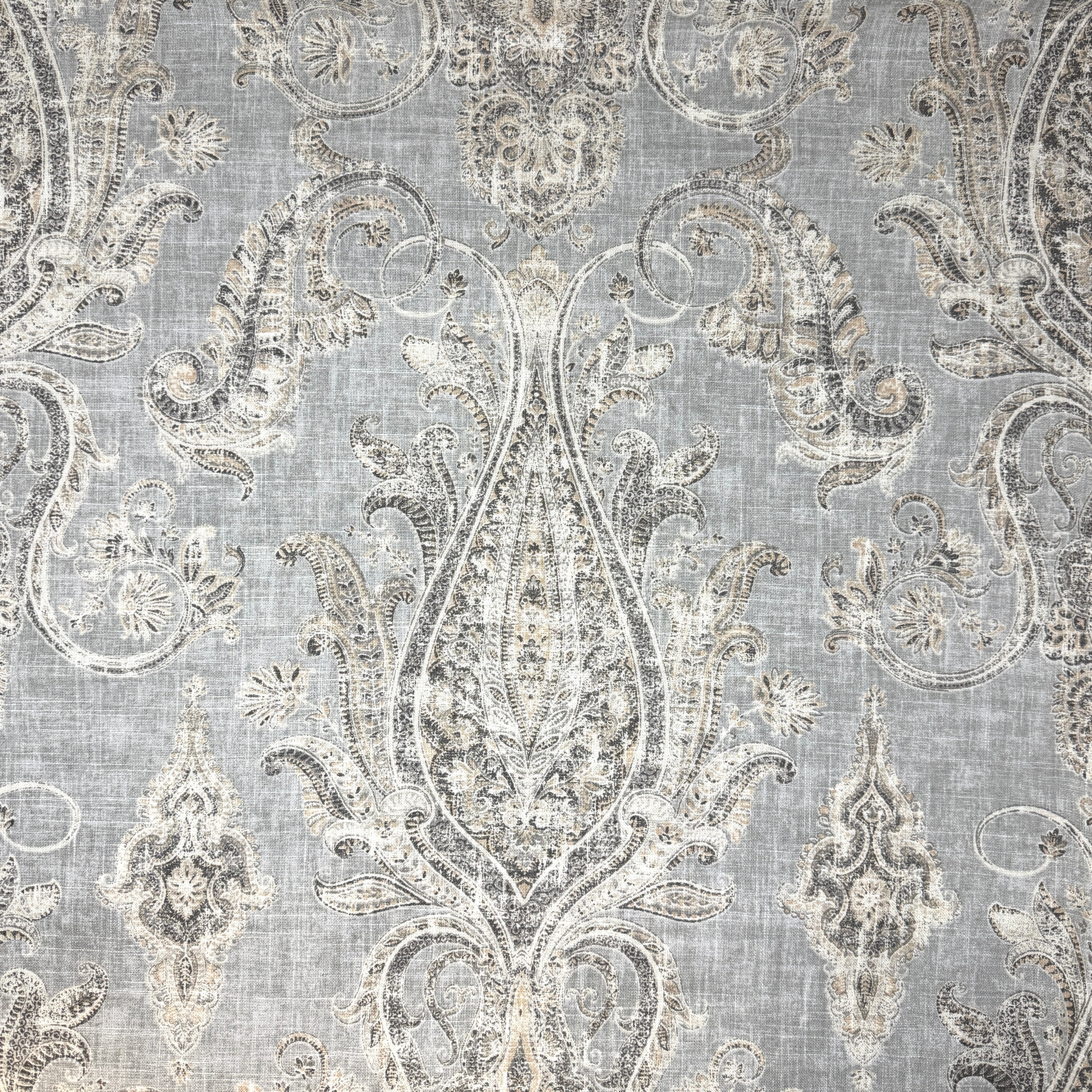 Vintage Damask Grey Linen Custom Flat Roman Shade/CL1188