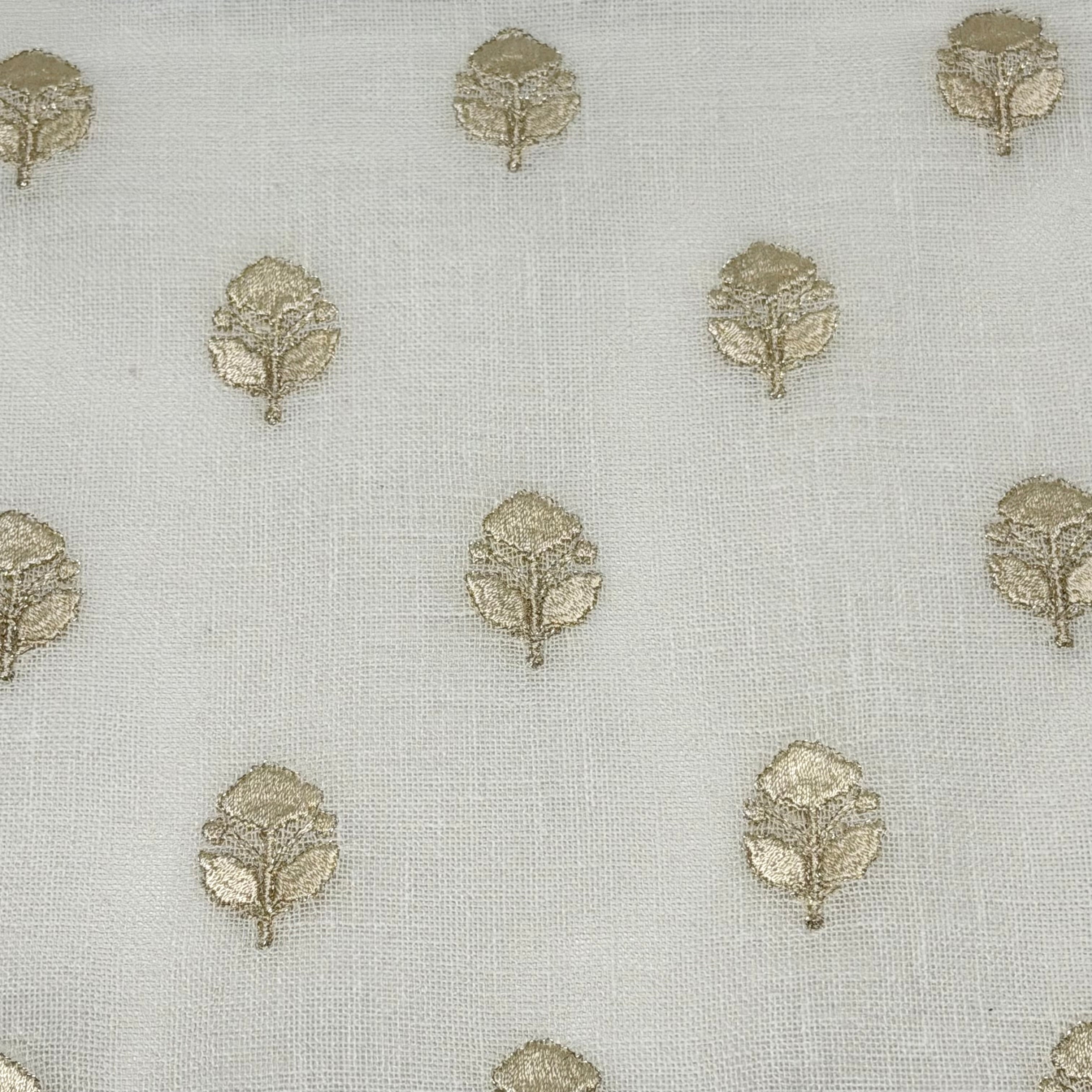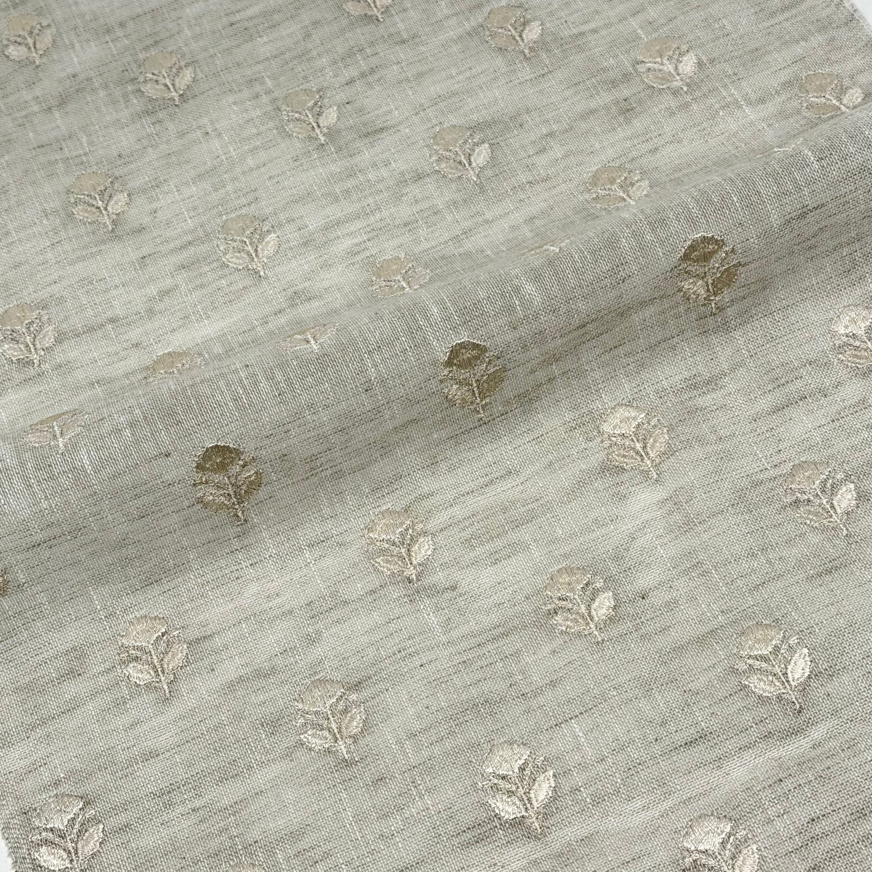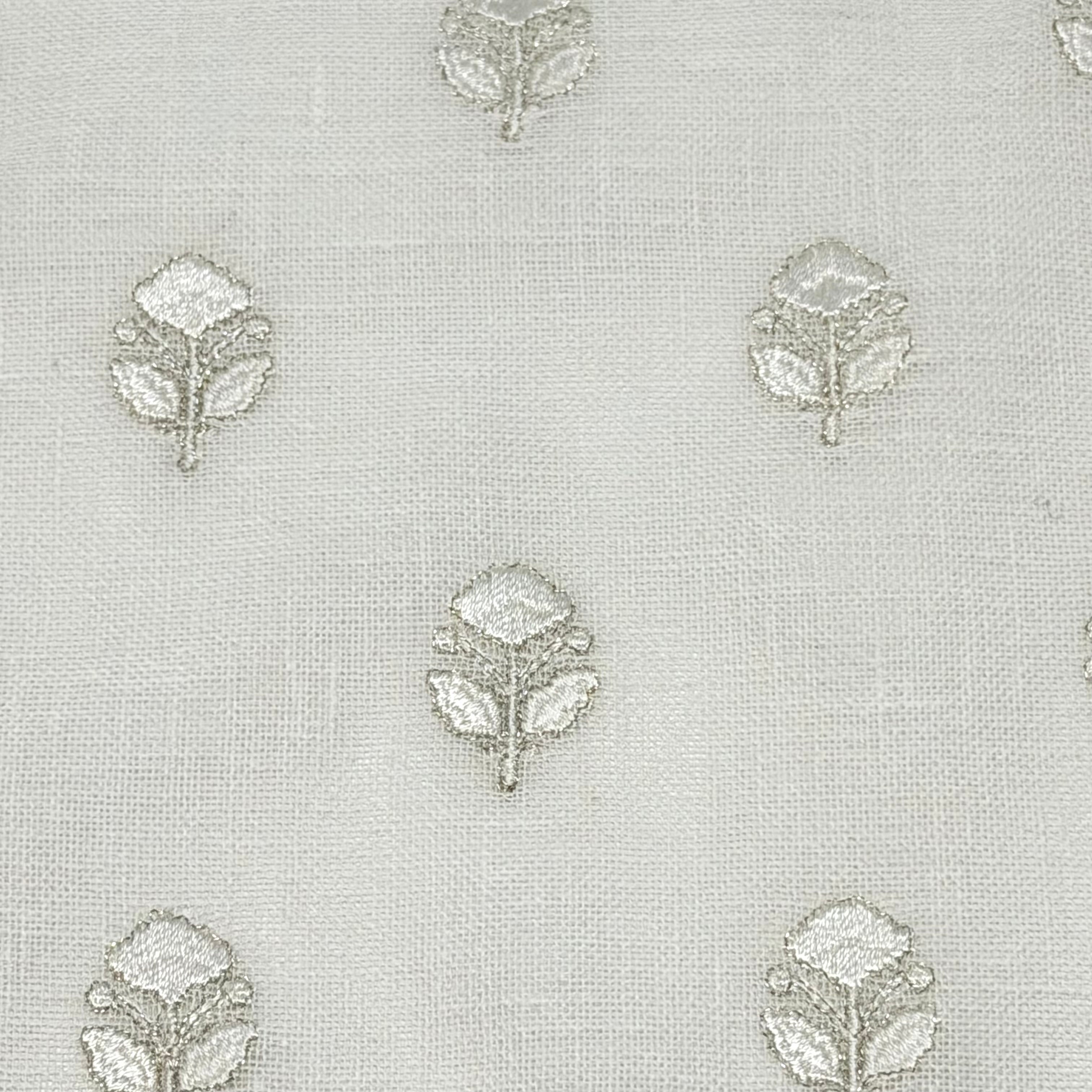 Delicate and airy, this linen blend sheer fabric features elegant floral embroidery in soft tones.