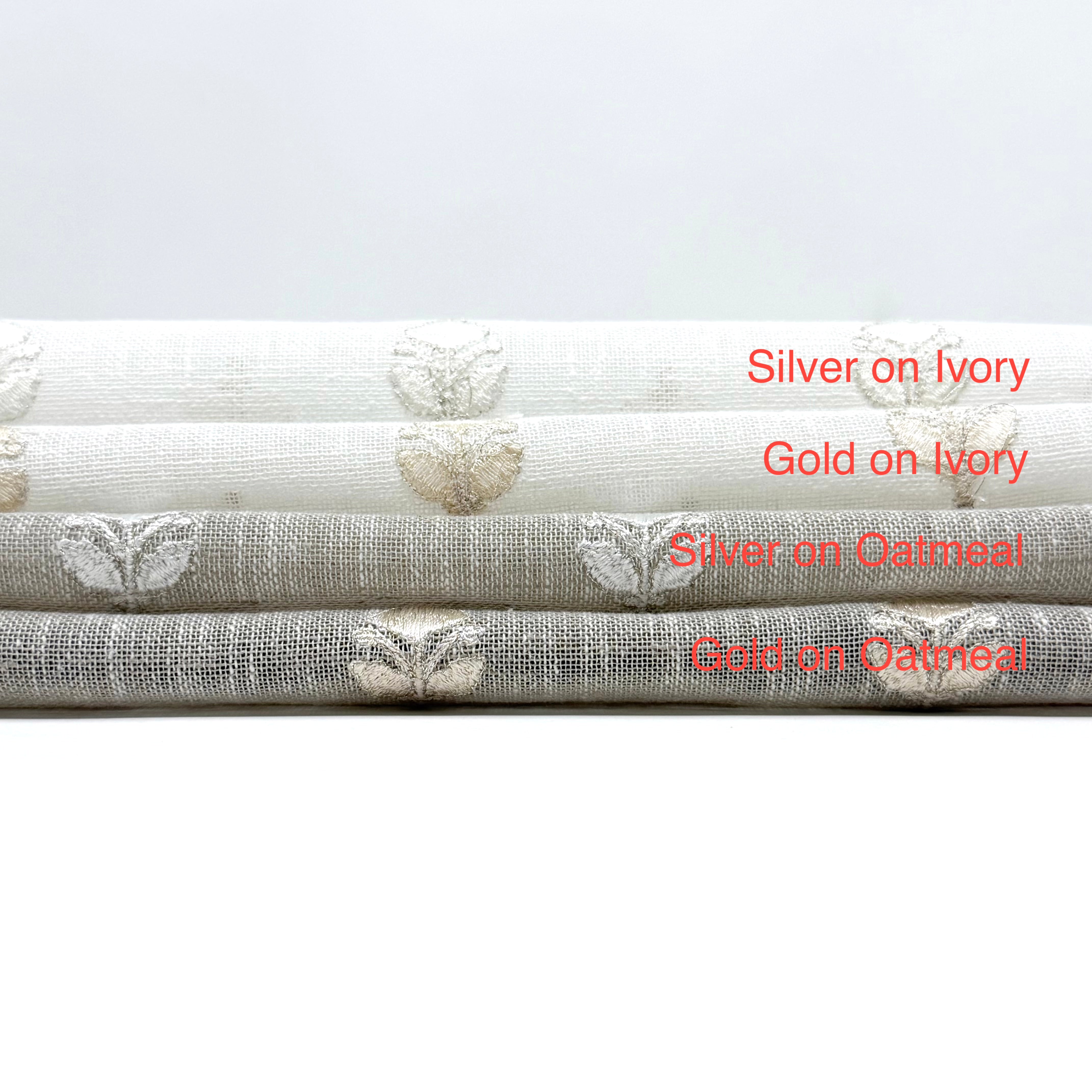 Leaf Floral Embroidery Sheer Linen Blend Fabric by the Yard / 54" Wide / CL1011
