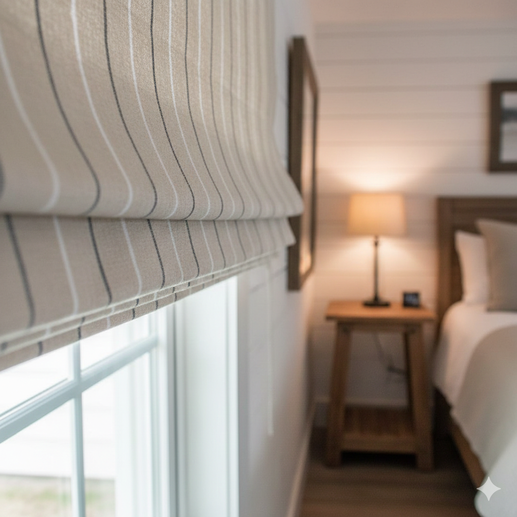 Natural 100% Linen Thin Stripe Flat Roman Shade