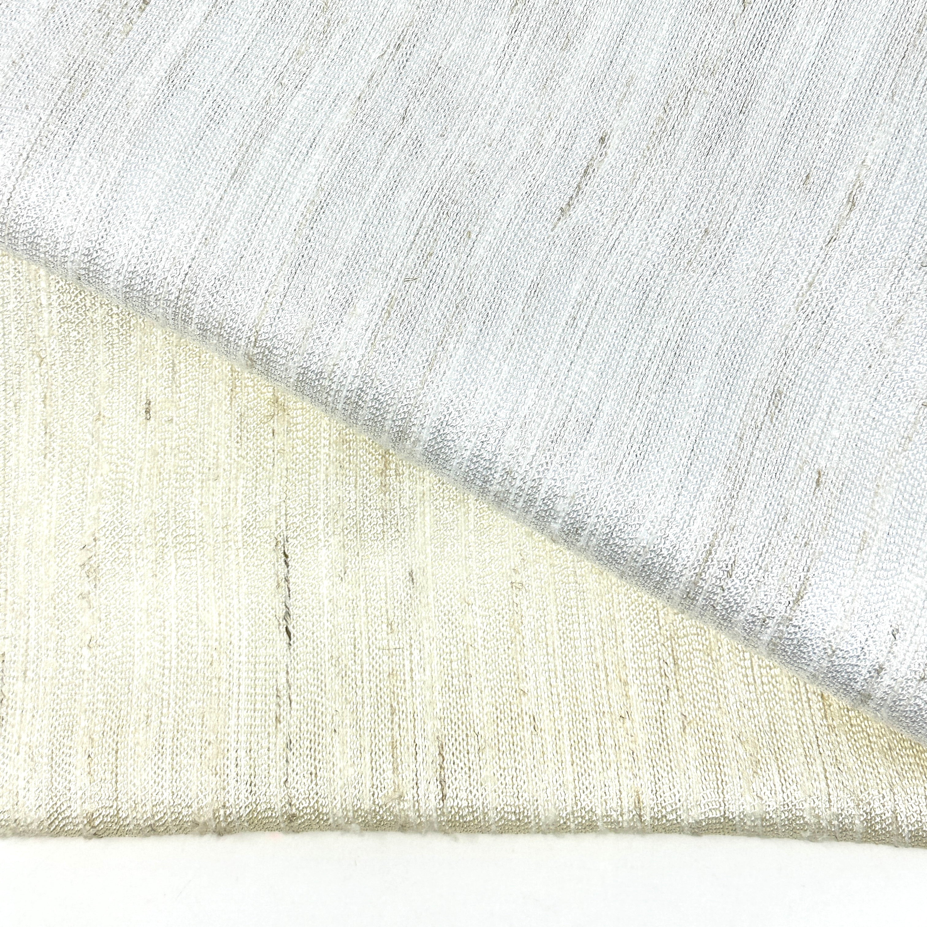 Glitter Silver Border Off-White Linen Relaxed Roman Shade