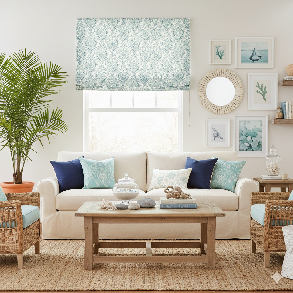 A Jacquard fabric roman shades a soft window covering that folds into elegant horizontal pleats when raised, but is made from luxurious Jacquard fabric, which features complex, textured patterns woven directly into the material, creating a rich, high-end, and durable look compared to printed fabrics, ideal for adding classic style and insulation to a room