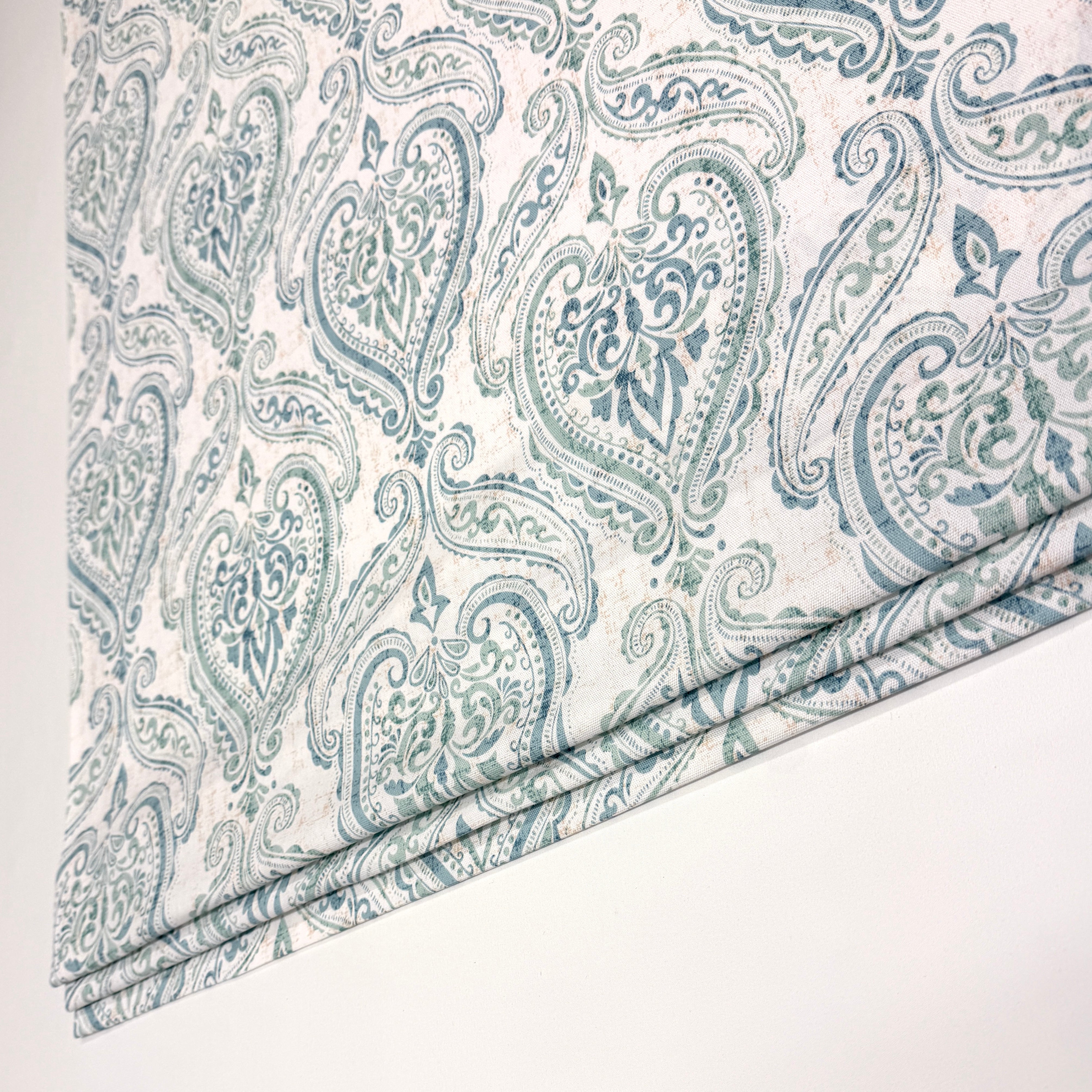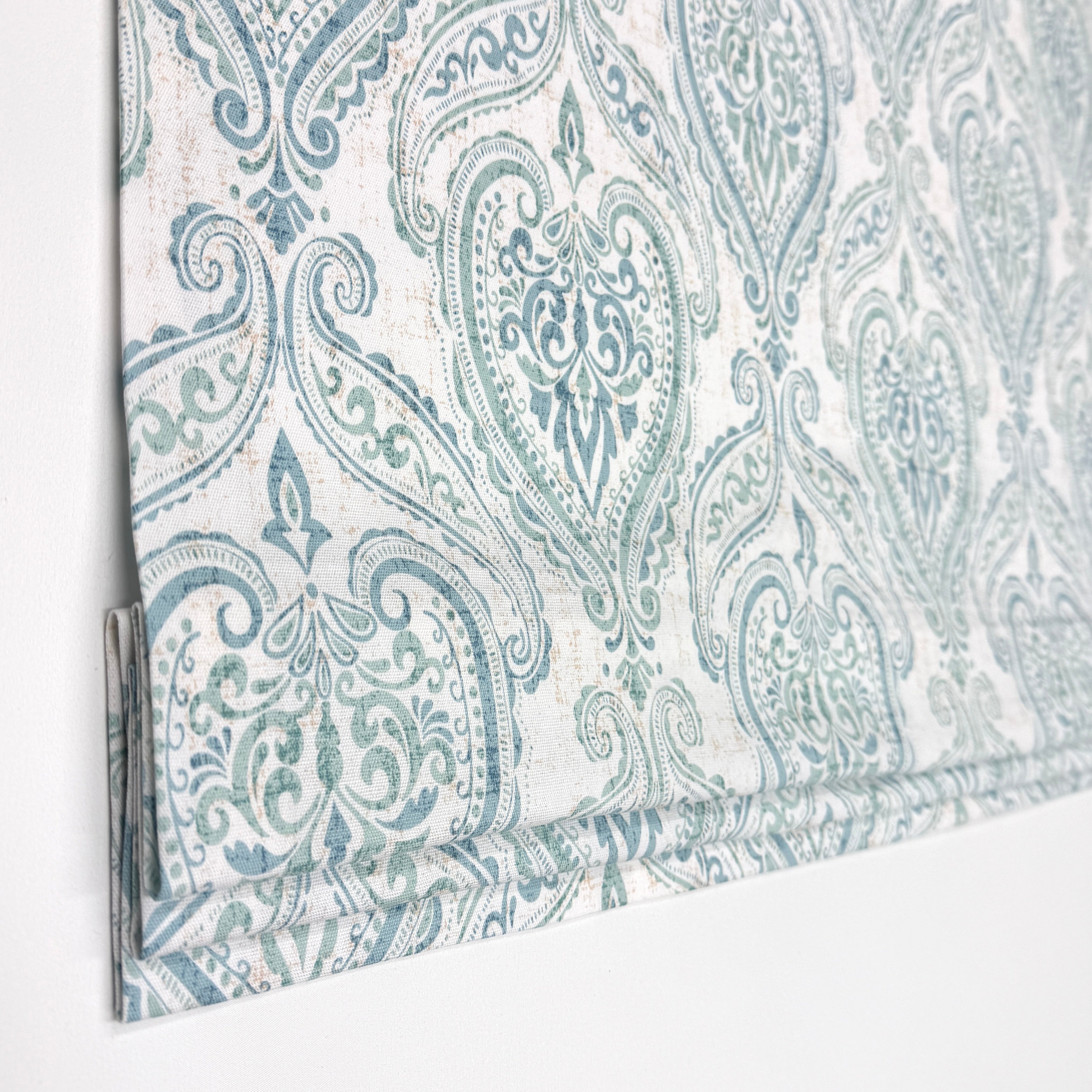 Damask Floral Ciel Cotton Duck Flat Roman Shade/CL1200