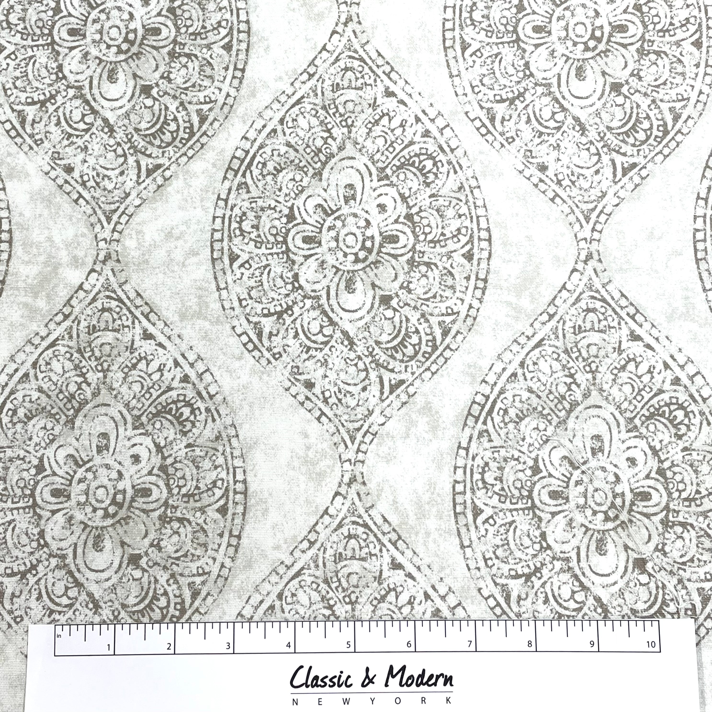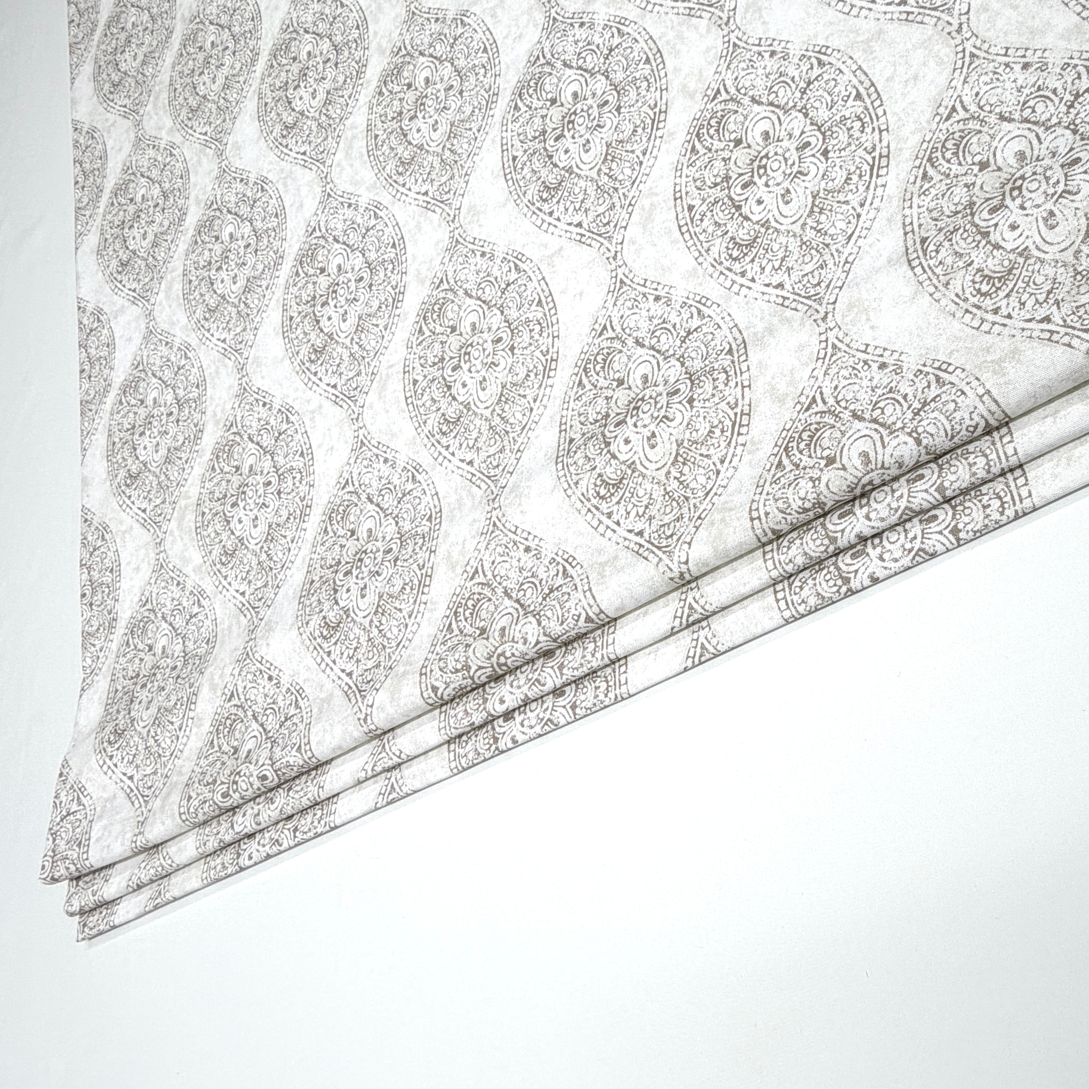 Damask Floral Gray Cotton Duck Flat Roman Shade/CL1201