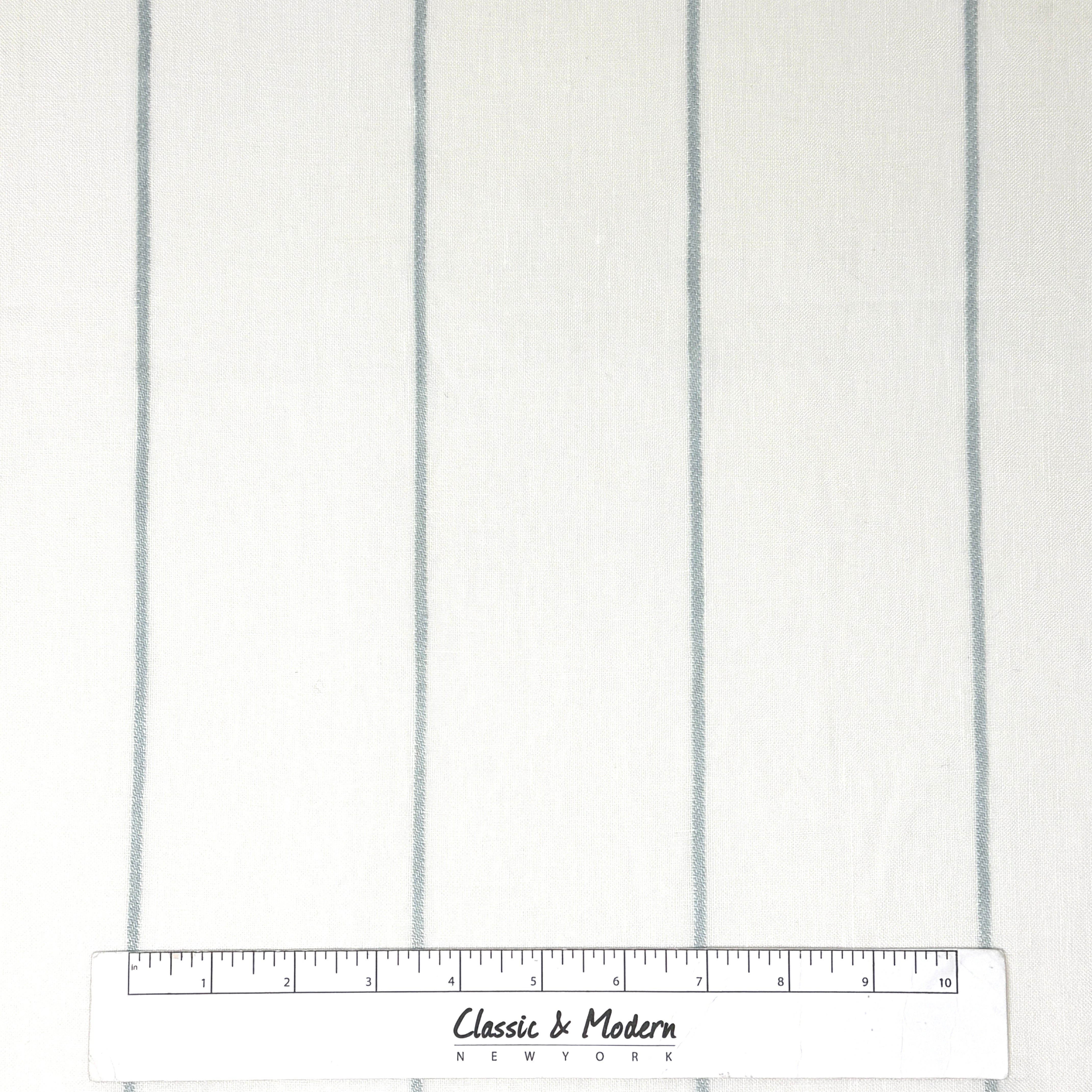 Ciel and White Striped 100% Linen Wide Stripe Flat Roman Shade/CL1026