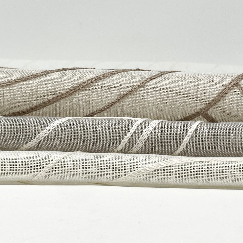 Striped Textured Embroidery Blend Linen Fabric by the Yard / 118" Width / CL1143