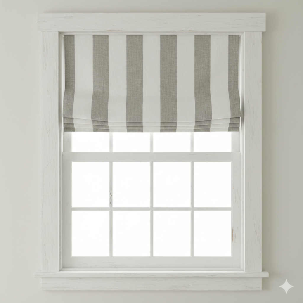 100% Linen Natural Color 3" Stripe Linen Roman Shade, CL1055