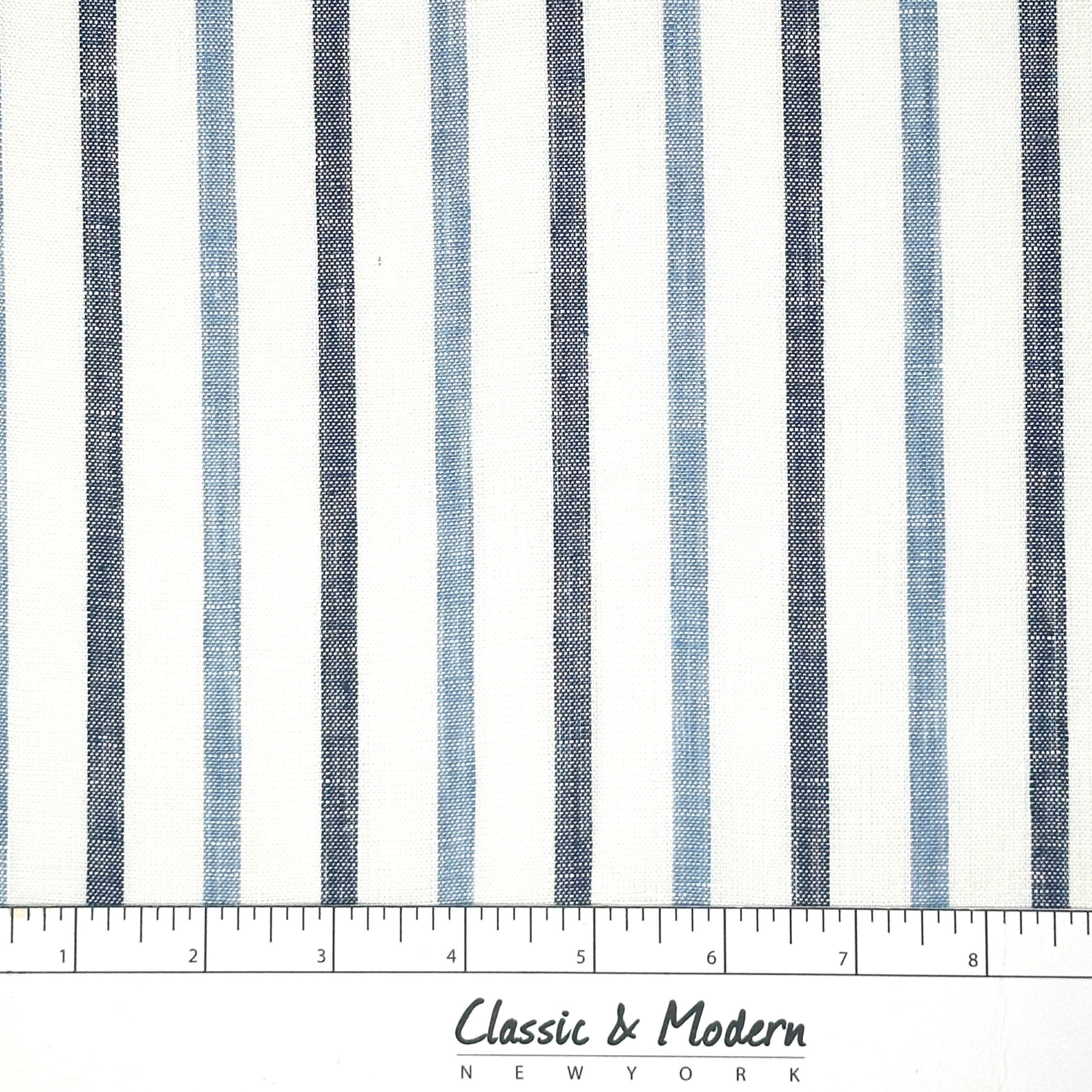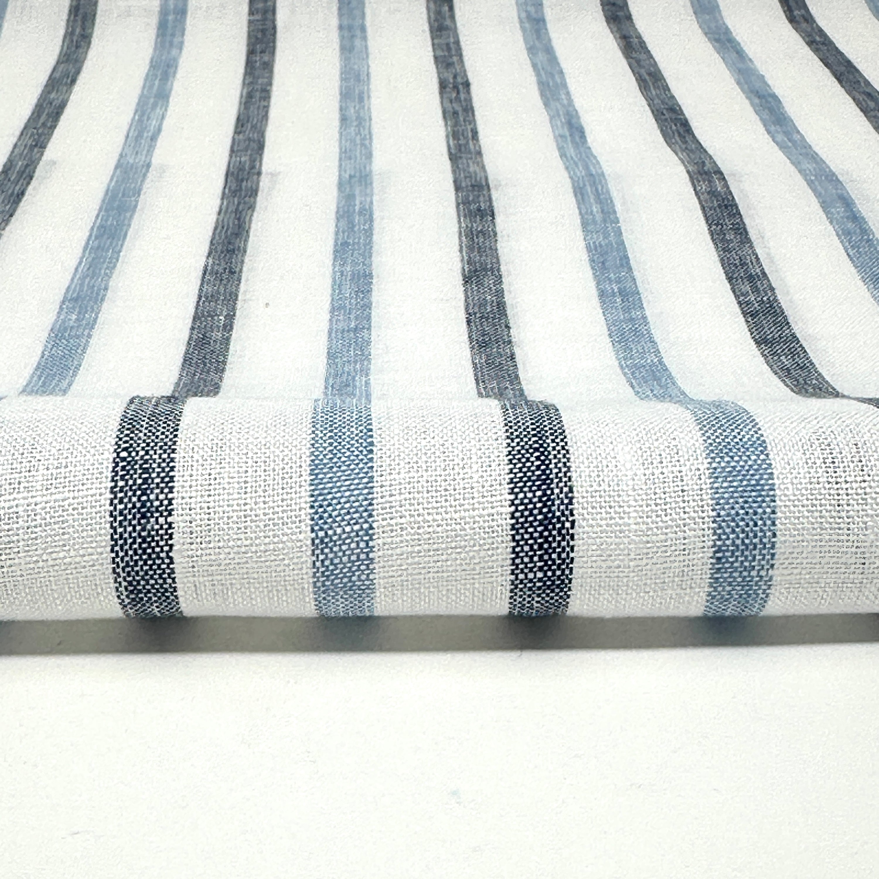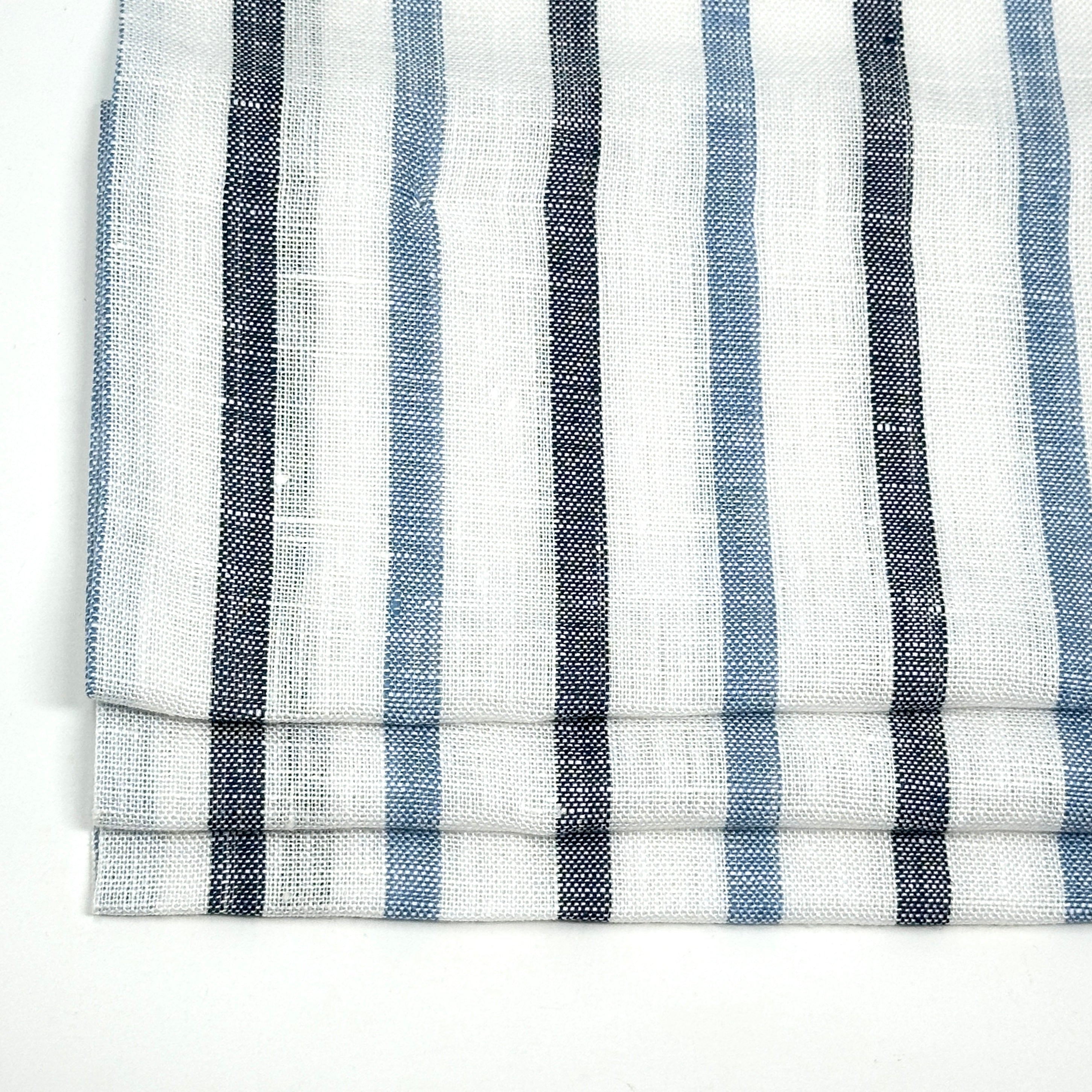 Blue Grey Striped 100% Natural Linen Fabric By The Yard / 53" Width / CL1046