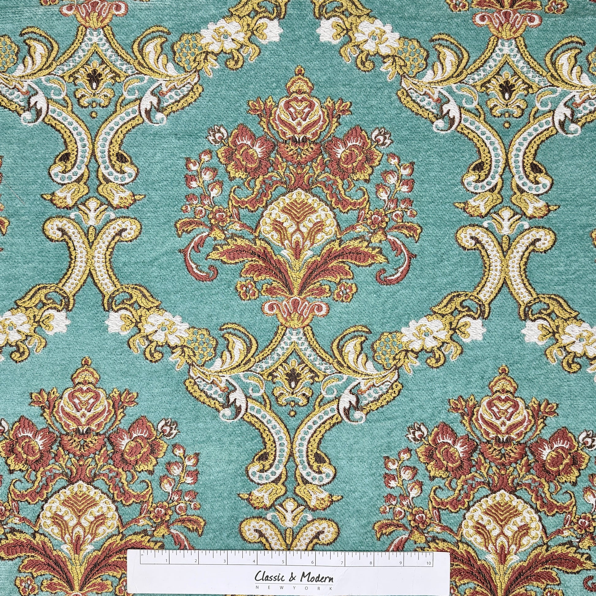 Sage Floral Damask Velvet Classic Relaxed Roman Shade, CL1195